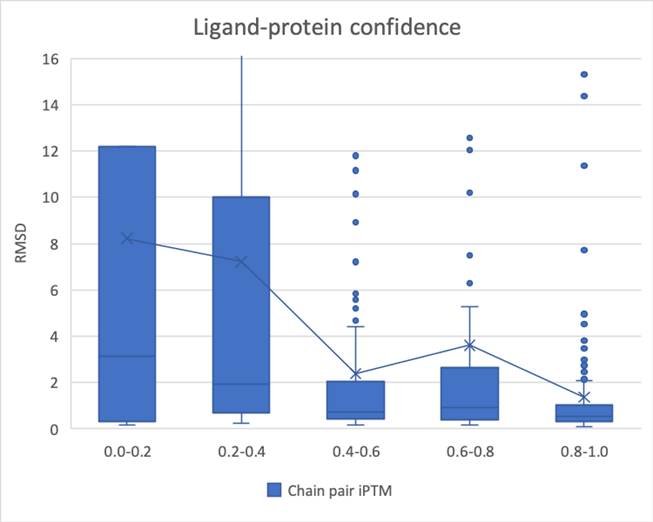 ▲ 圖8 Alphafold3復現(xiàn)工作在小分子配體-蛋白質數(shù)據(jù)集上的預測置信度分布