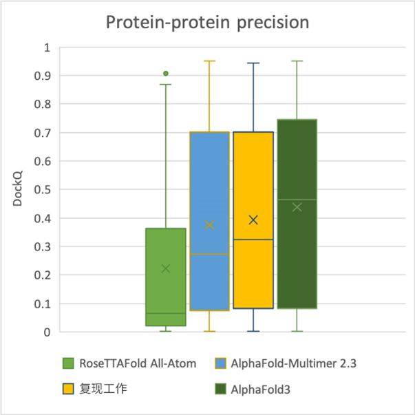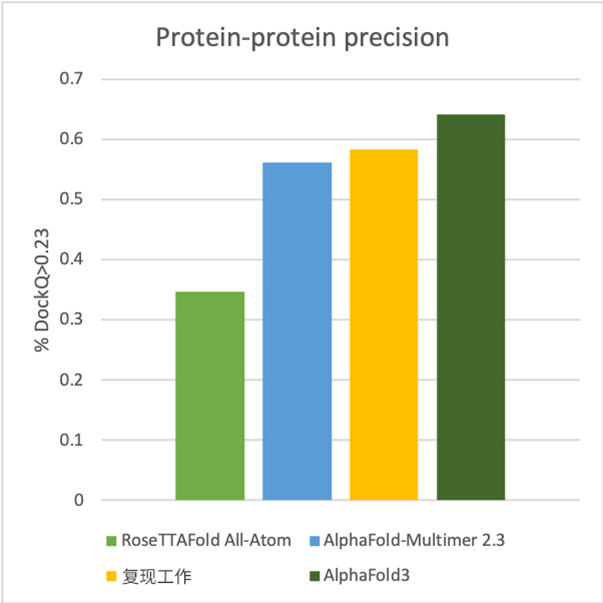 ▲ 圖6 Alphafold3復現(xiàn)工作與同類模型在蛋白質結構預測任務上的Docka分值對比