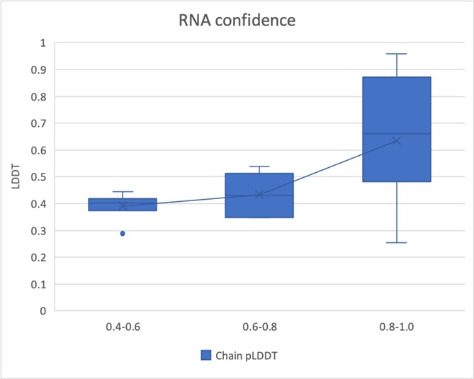 ▲圖10 Alphafold3復現(xiàn)工作在RNA分子數(shù)據(jù)集上的預測置信度分布