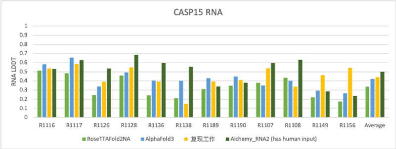 ▲圖4 Alphafold3復現(xiàn)工作與同類模型在CASP15上的精度對比