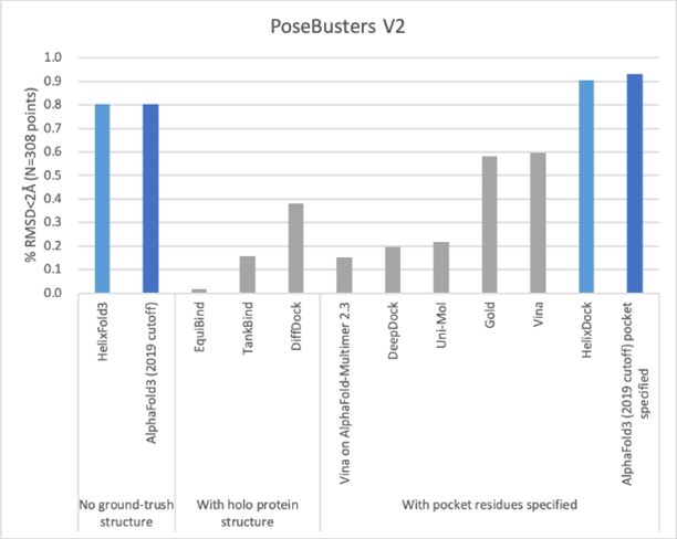 ▲圖2 PoseBusters V2數(shù)據(jù)集上AlphaFold3復現(xiàn)工作與同類模型的精度表現(xiàn)