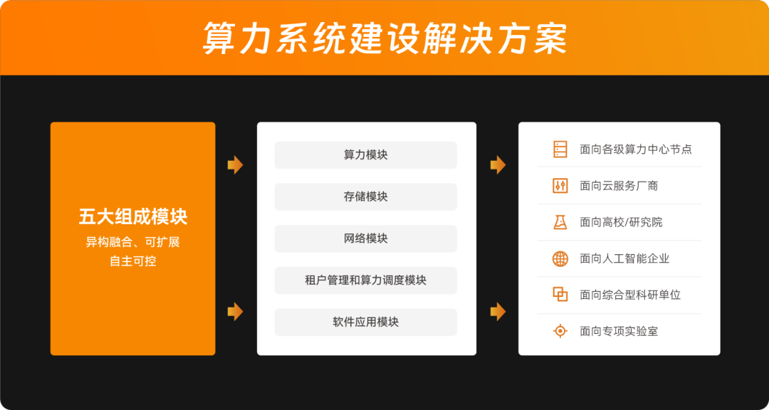 在無錫市委市政府和國家超級計(jì)算無錫中心的指導(dǎo)和支持下,太初元碁作為國內(nèi)領(lǐng)先的智能計(jì)算系統(tǒng)解決方案提供商承接了該中心智算系統(tǒng)的建設(shè)任務(wù),(延伸閱讀:中標(biāo),又一智算中心;感知,時(shí)代未來之城!),通過緊密結(jié)合市場需求,聯(lián)合智算產(chǎn)業(yè)合作伙伴,充分調(diào)動(dòng)內(nèi)外部專家資源,基于國產(chǎn)化的自主可控硬件系統(tǒng)和豐富的自主研發(fā)軟件生態(tài),構(gòu)建面向數(shù)字產(chǎn)業(yè)化的智能計(jì)算平臺。