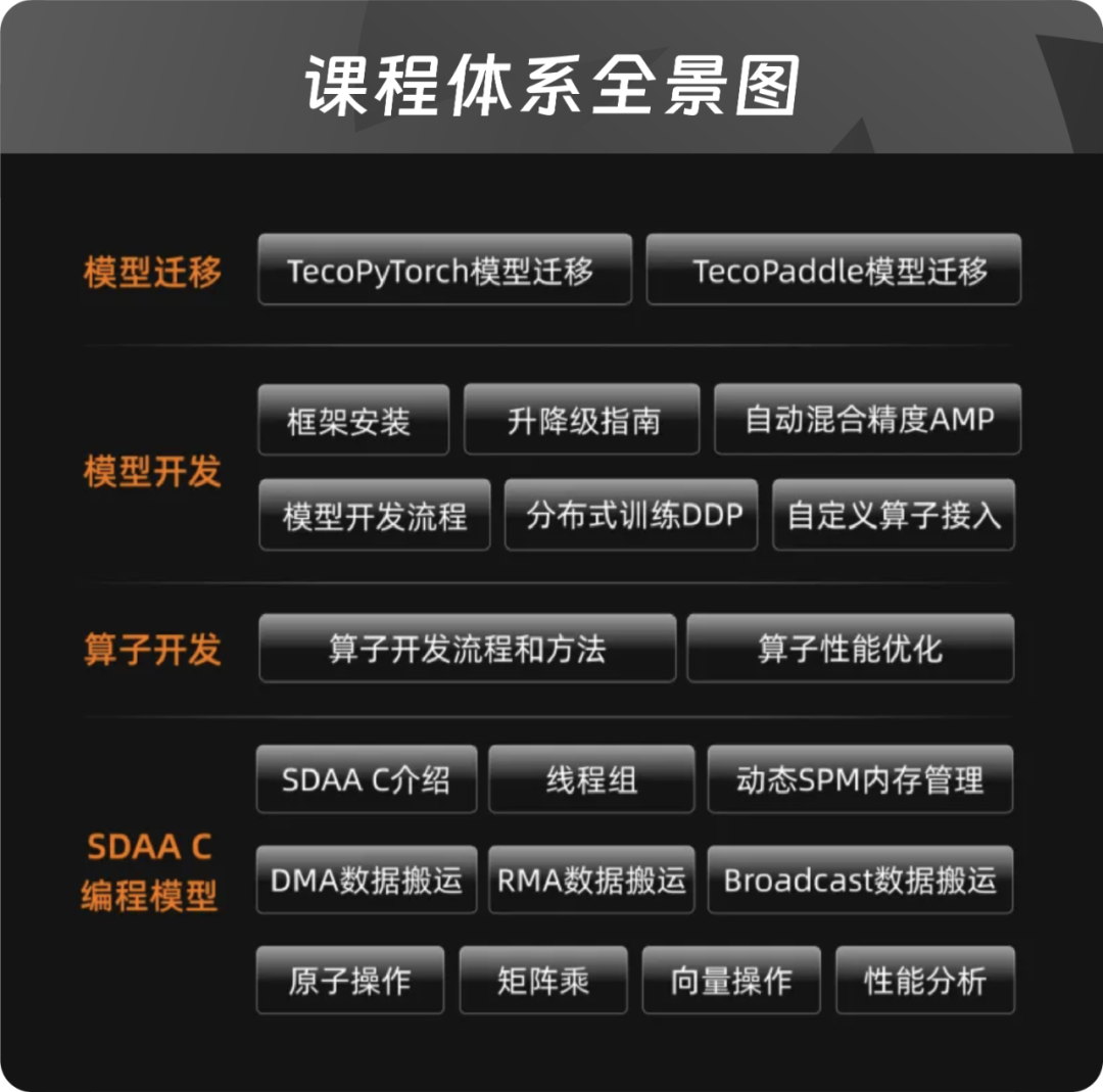 面對(duì)不同的開發(fā)者場(chǎng)景,文檔中心提供了包括環(huán)境部署、模型訓(xùn)練、算子開發(fā)、開發(fā)者工具等多類文檔與在線課程。內(nèi)容專業(yè)詳實(shí),支持零基礎(chǔ)使用SDAA C編程語(yǔ)言開發(fā)算子;在PyTorch或PaddlePaddle框架上進(jìn)行模型訓(xùn)練;通過(guò)易上手的工具調(diào)試程序,高效接入Tecorigin軟件生態(tài),基于Tecorigin環(huán)境構(gòu)建應(yīng)用,快速實(shí)現(xiàn)應(yīng)用創(chuàng)新。
