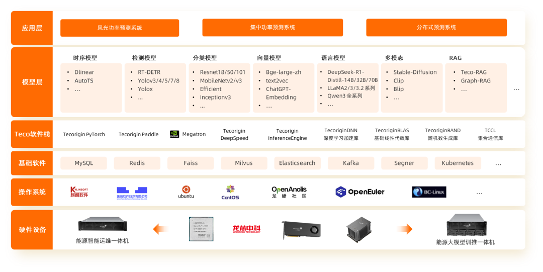新能源場景AI基座:太初元碁高性能異構(gòu)眾核 AI 加速卡 + 疾風(fēng) AI 大模型,是全國首批面向新能源深度優(yōu)化場景下的行業(yè)應(yīng)用大模型基座,采用強化學(xué)習(xí)與高性能計算(HPC)相結(jié)合的技術(shù)架構(gòu),支持高精度氣象預(yù)測、極端天氣預(yù)警、發(fā)電量預(yù)測等任務(wù)。
