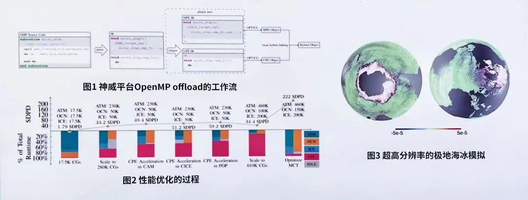 論文從目前大型超算系統(tǒng)的異構(gòu)架構(gòu)面對(duì)移植復(fù)雜氣候模式的難點(diǎn)入手,完成了氣候模式CESM2.2向四千萬(wàn)核的新一代神威超級(jí)計(jì)算機(jī)的移植,使實(shí)現(xiàn)超高分辨率氣候模擬的年代級(jí)數(shù)據(jù)生產(chǎn)成為可能。面向算力應(yīng)用領(lǐng)域,攻堅(jiān)關(guān)鍵核心技術(shù),持續(xù)推動(dòng)新技術(shù)、新模式、新業(yè)態(tài),助力行業(yè)智能化轉(zhuǎn)型。