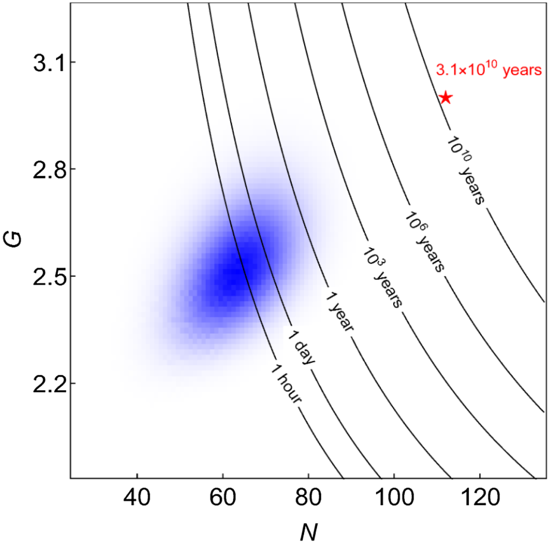 圖:九章三號的計算復雜度需要花費超級計算機的時間